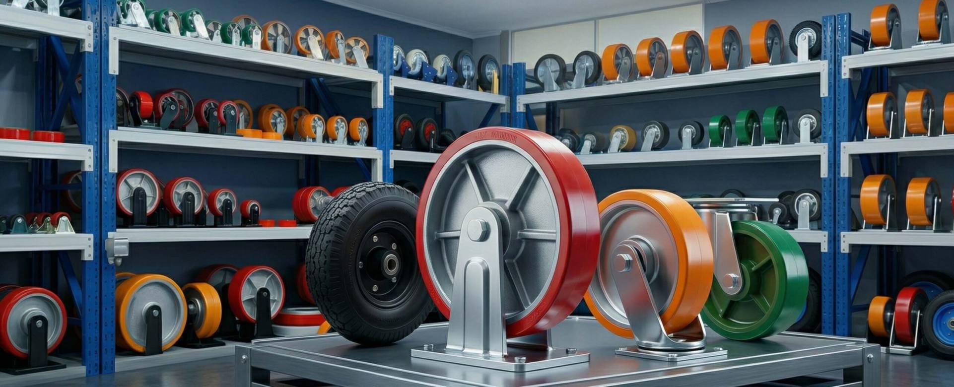 Explora nuestras diferentes gamas de ruedas diseñadas para cada nivel de exigencia desde soluciones ligeras para oficina hasta series de carga súper pesada en acero forjado y poliuretano.