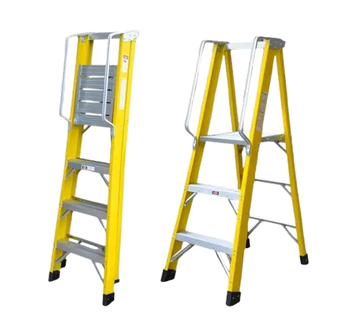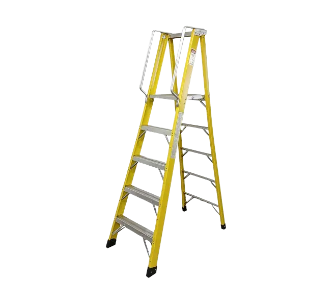 La Escalera de Tijera 5 Peldaños Fibra de Vidrio y Pasamanos de Aluminio, está fabricada con Pilares de Fibra de Vidrio y Peldaños de Aluminio. Dispone de 5 Peldaños, Plataforma de Trabajo y Pasamanos de Aluminio. Esta Plataforma en la Sección Superior, permite trabajos prolongados, con una Superficie muy Segura. También se puede utilizar para dejar herramientas, o cualquier elemento, mientras el usuario desarrolla su actividad. Adicionalmente, se dispone de dos pasamanos en la parte superior para una escalada y descenso fácil y seguro. Su diseño liviano y resistente la hace fácil de transportar y manipular, mientras que los sistemas de bloqueo garantizan su estabilidad. Se destaca principalmente por su simpleza en el formato “de Tijera” ya que no requiere apoyarse en ninguna pared, lo que la hace conveniente para una variedad de trabajos, tanto en interior, como al aire libre.