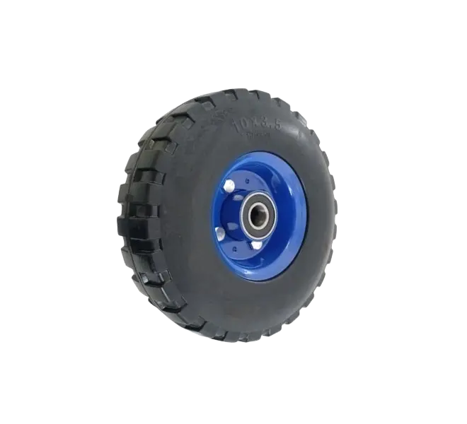 El Caucho Macizo es muy resistente y es el mejor para usar a través del agua y superficies mojadas. La Rueda presenta muy buena tolerancia a grasas y aceites. Evitar suelos contaminados con productos químicos moderadamente agresivos. Buena resistencia a desgaste, golpes, grasas y otros productos derivados del petróleo. Se debe evitar contacto con vapores saturados, ácidos fuertes y solventes clorados. Su velocidad máxima 4 Km/Hr. y sólo permite tracción manual. Temperatura de trabajo y almacenamiento -20 °C a 50 °C.