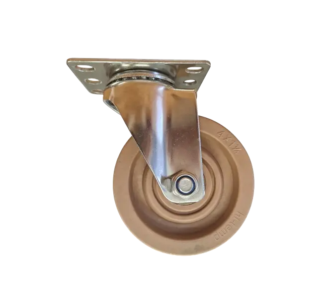 La Rueda Fenólica Fibra Vidrio Placa Acero Inox 304 Giratoria 100 mm, presenta una buena resistencia a productos químicos moderadamente agresivos y ambientes húmedos. Temperatura Máxima de Trabajo es de 280°C. Velocidad Máxima de Trabajo 4 Km/Hr. Empuje Manual.