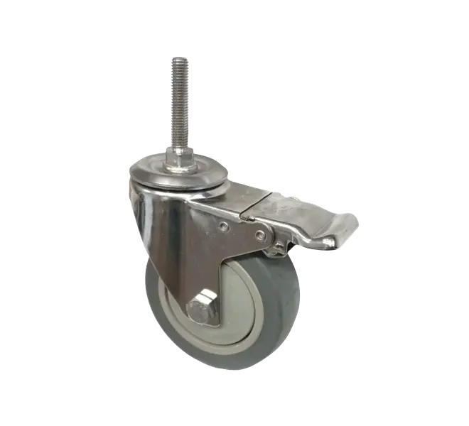 | RUEDA GOMA TPR 100 MM ACERO 304 PERNO PASANTE M10 GIRATORIA CON FRENO | |||||